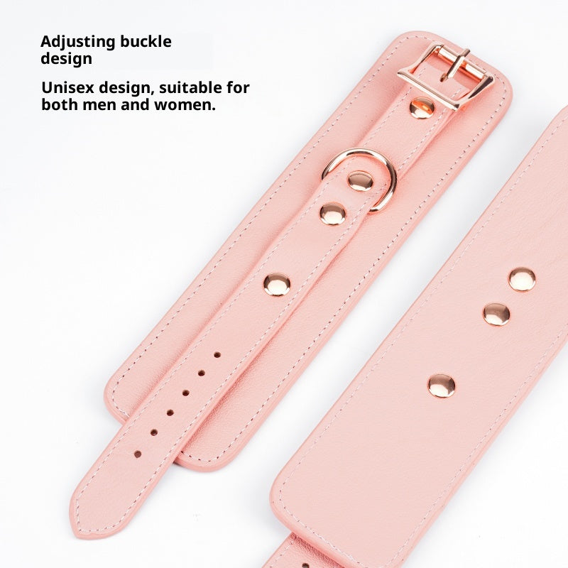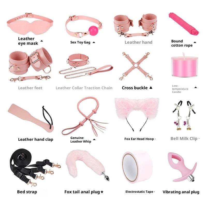 Crafted with soft pink genuine leather and rose-gold metal details, this premium set delivers an exquisite balance of comfort, sophistication, and control. Each piece — from the restraints and collars to the whip, candle, and vibrating plug — is meticulously designed to enhance every sensation and elevate your intimate experiences.